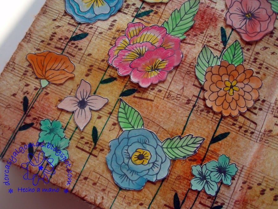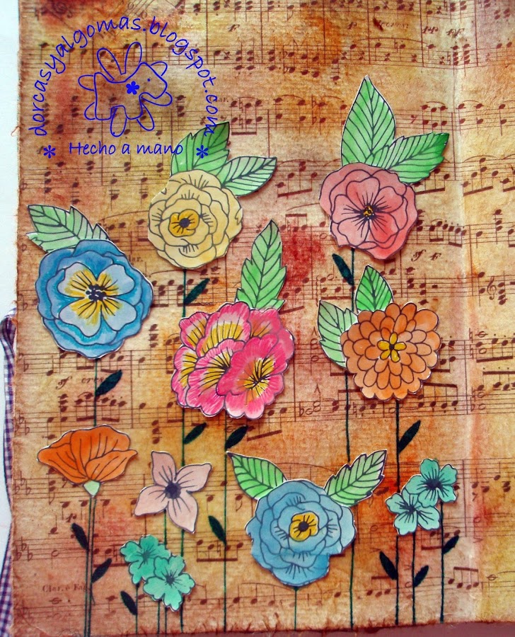 Las he pegado sobre el lado izquierdo de la página y he pintado con acuarelas.