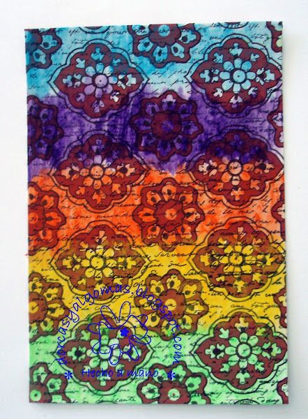 He pintado con los gelatos, pero si no tenéis podéis utilizar acuarelas. El utilizar este tipo de pinturas es para que se siga viendo el fondo decorado del papel. Si utilizamos otra pintura más cubriente, terminaríamos por cubrir todo.