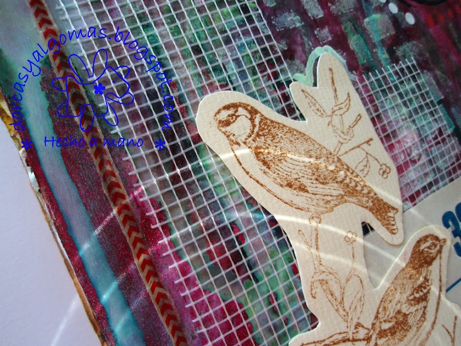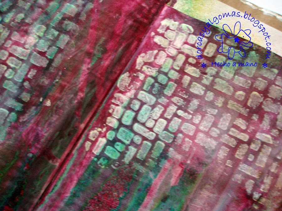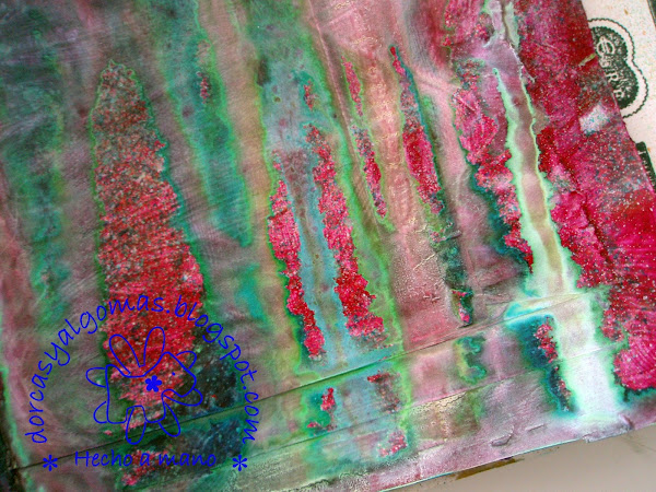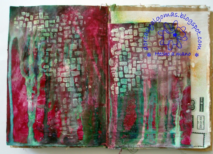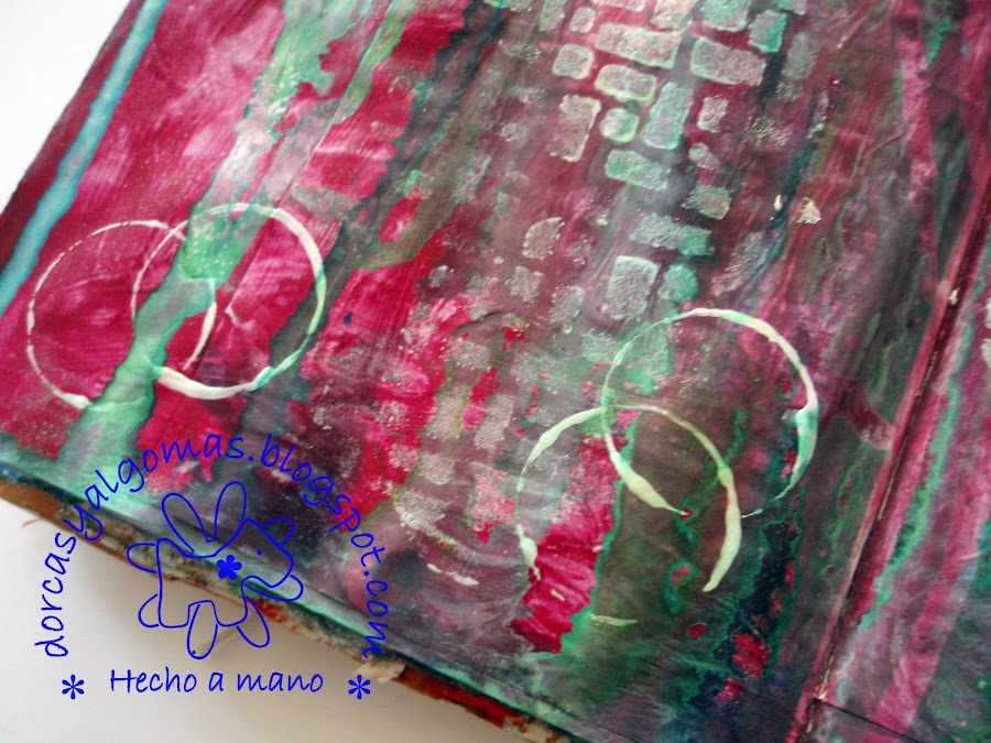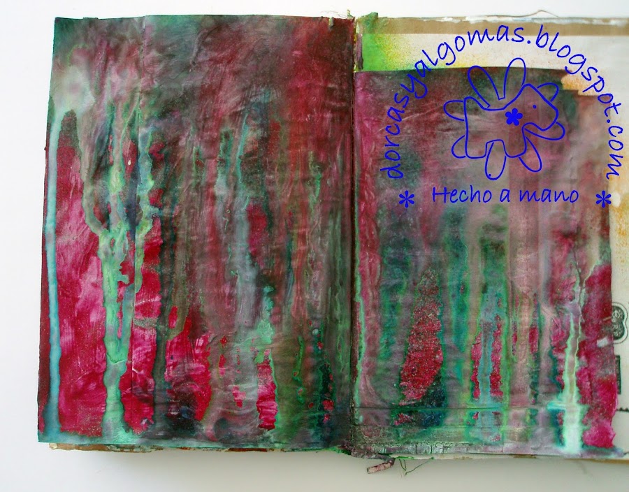 Una vez secó la pintura, hice escurriduras con las tintas en spray Dylusions y este es el efecto: