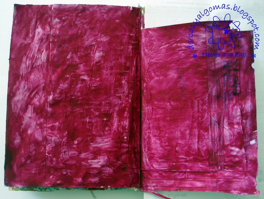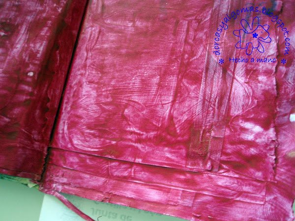 Para la primera capa, utilicé acrílica de color fucsia, la cual apliqué con los dedos y antes de que se secase, quité el excedente con una toallita húmeda.