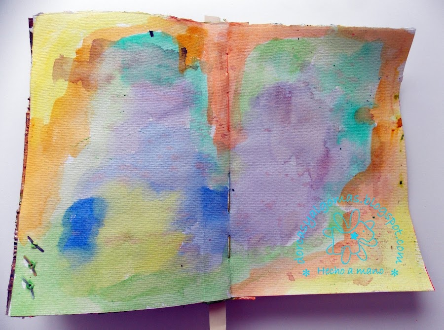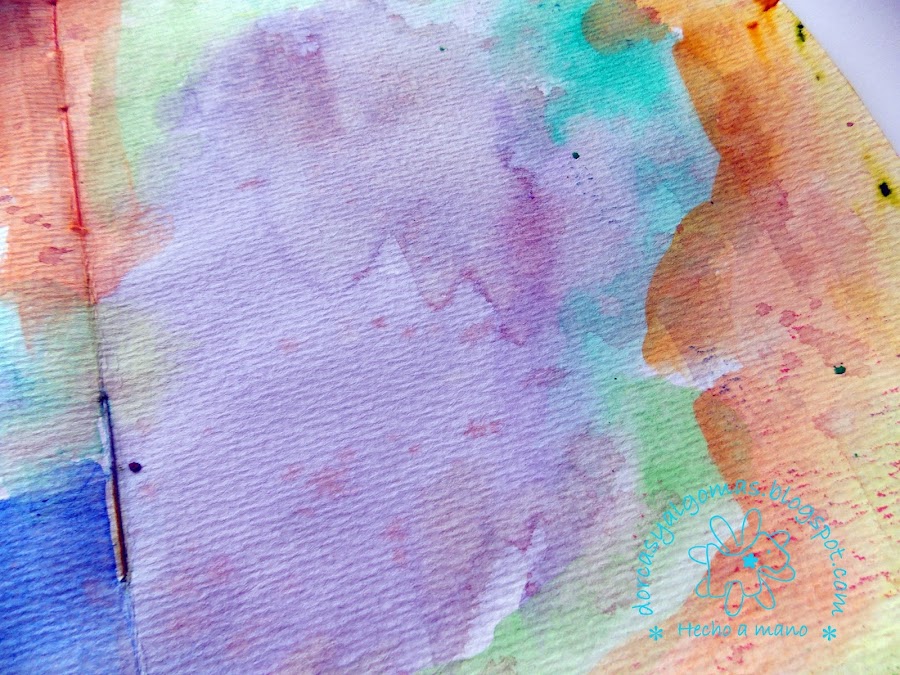 Primeramente he aplicado acuarelas con un pincel por toda la página.