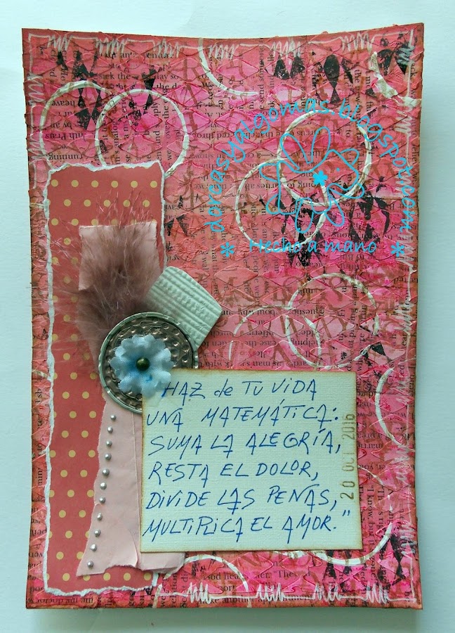 Para empezar el mes y la semana nada mejor que una página de Art Journal. Esta página participa en la actividad de intercambio "Traveling" del grupo Art Journal Creativo España. Cuyo requisito es utilizar el combo de color propuesto.
