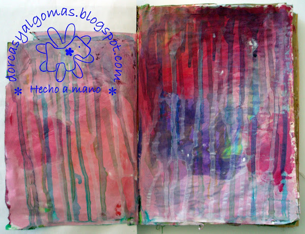Con las tintas en spray he hecho escurriduras hasta crea un fondo que me gustase.