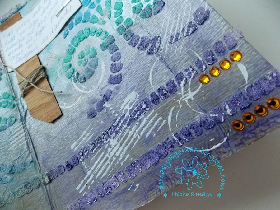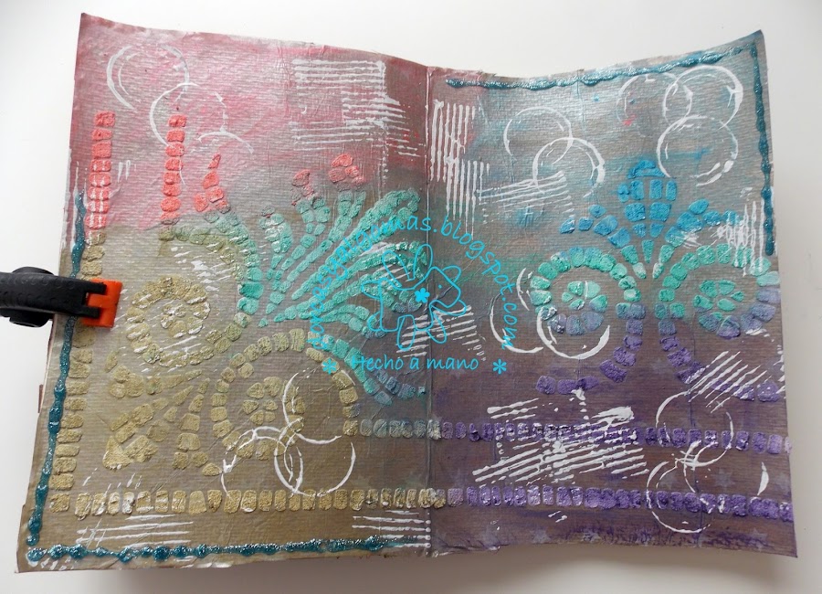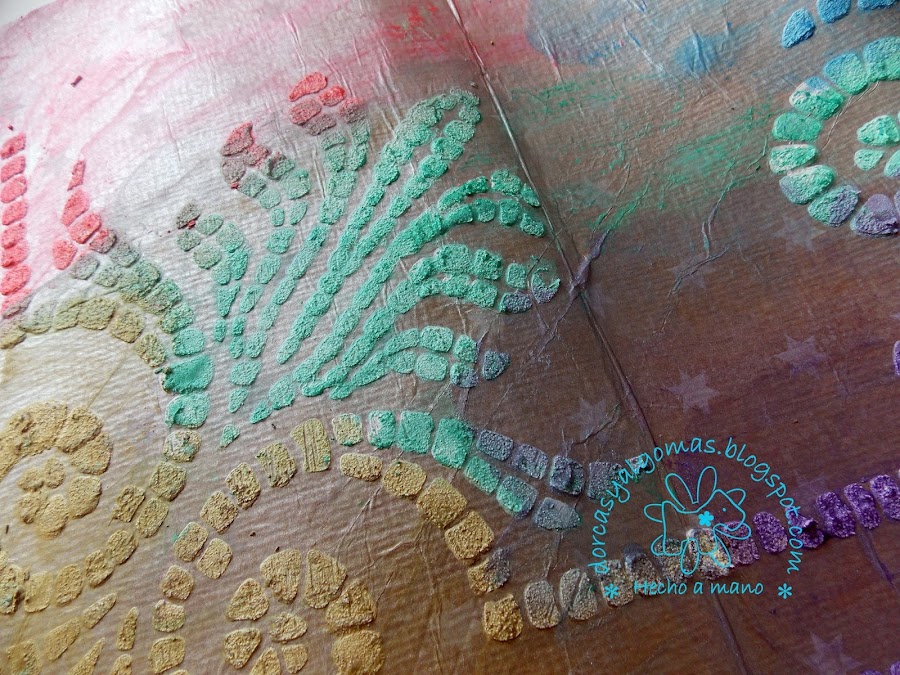 Dejo secar bien y pinto con los Gelatos. Luego diluyo la pintura con agua y un pincel.