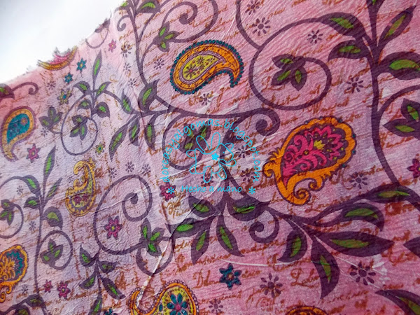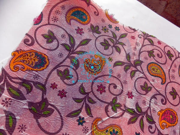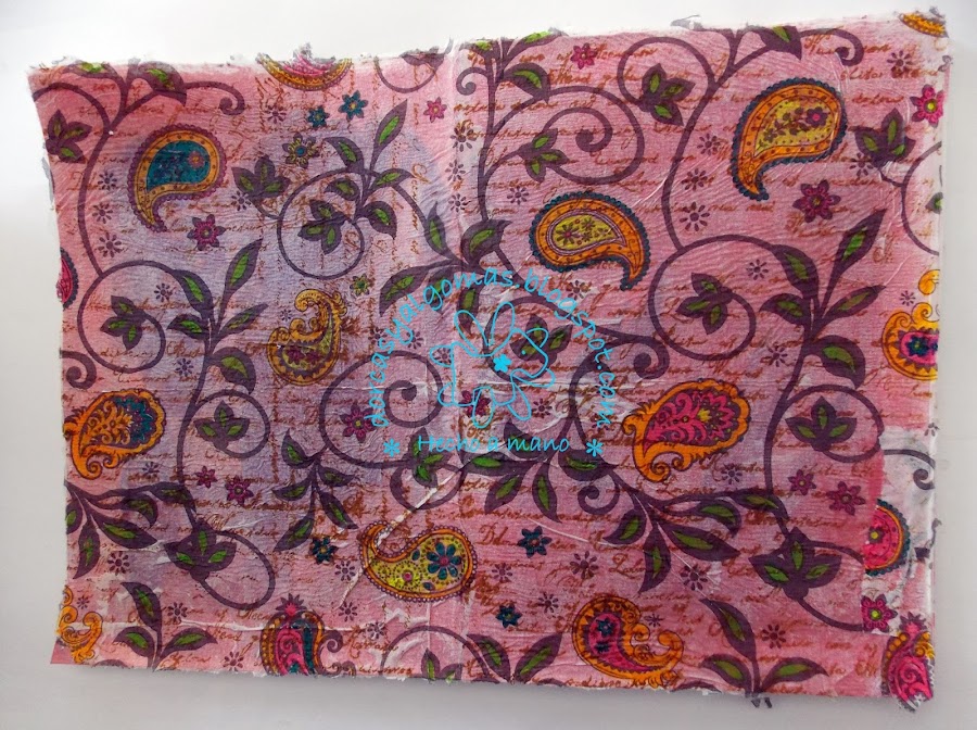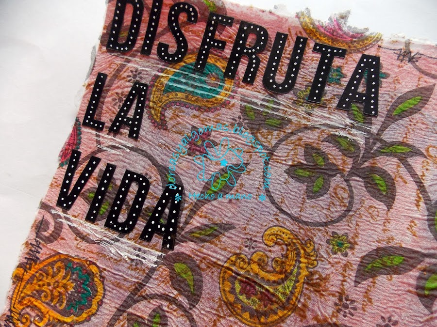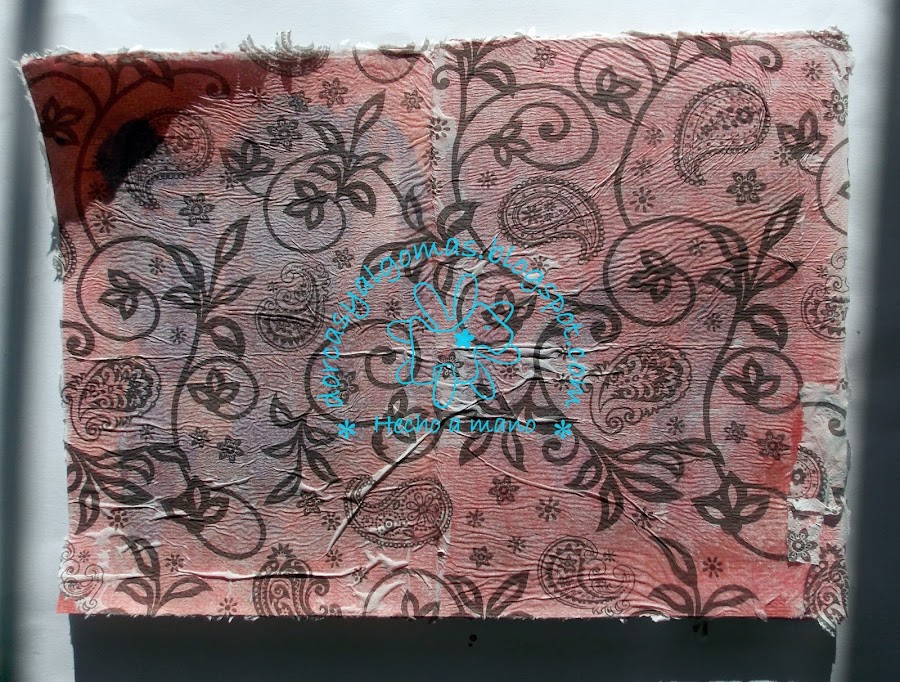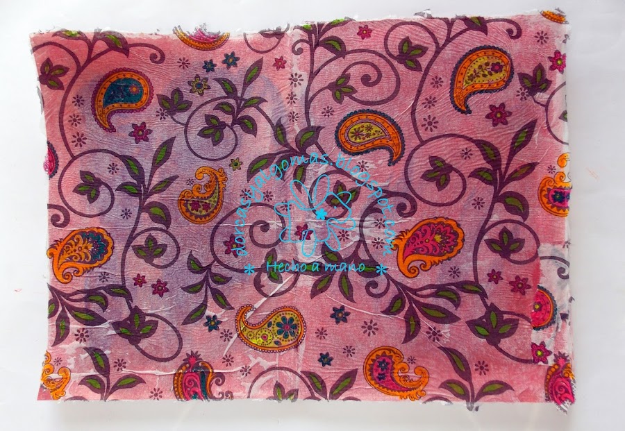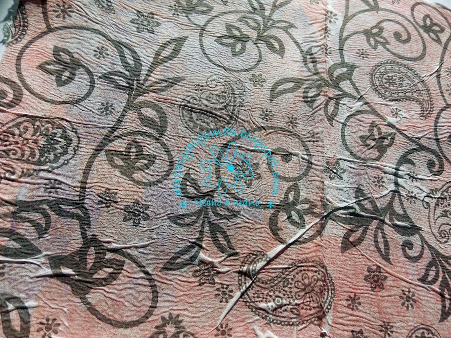 Encima pego un papel de seda decorado con motivos florales y con fondo blanco.