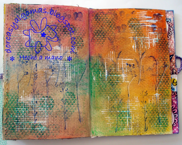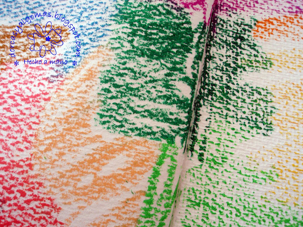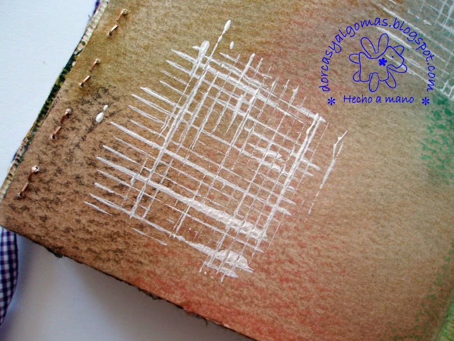 Con un plástico de burbujas y pintura acrílica blanca, estampo por algunos sitios de la página.