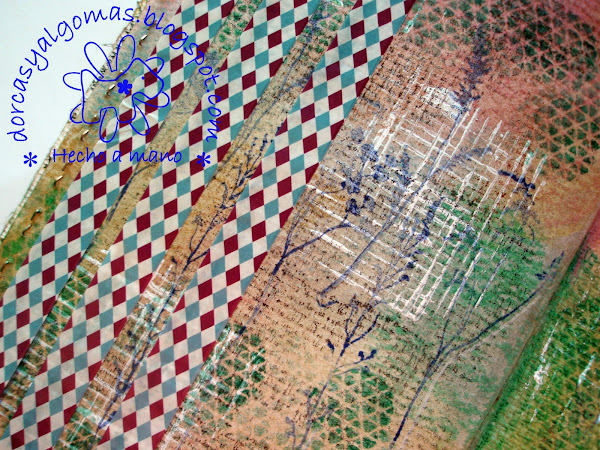 Para el siguiente paso he utilizado un trozo de cartón corrugado como sello y lo he pintado con pintura acrílica blanca, he estampado en horizontal y en vertical, quedando el efecto de la fotografía.
