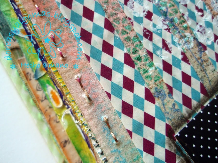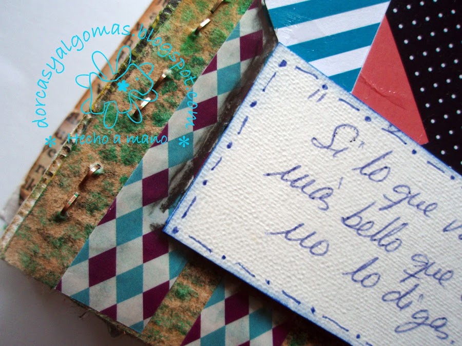 Podéis observar que en el lateral izquierdo hay una fila de grapas , son la parte trasera de las grapas que utilicé como adorno en la página anterior, decidí no taparlas porque me servían de adorno para la página actual.