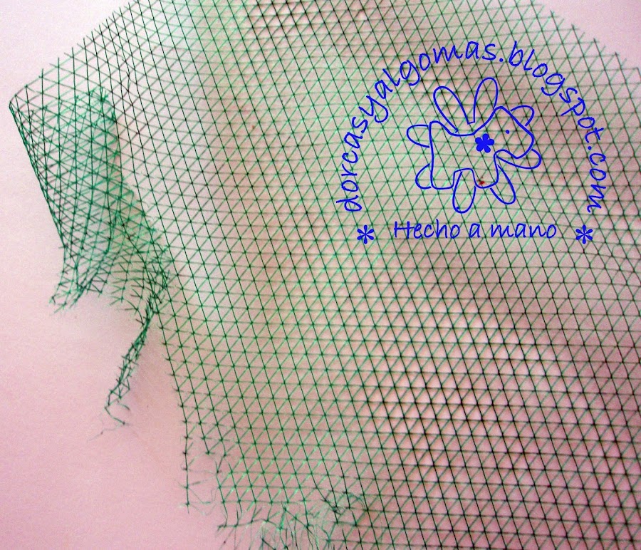 Ahora he utilizado la malla de los limones como plantilla de stencil y he utilizado tinta de estampar de color verde con una esponjilla, queda muy lindo el resultado.