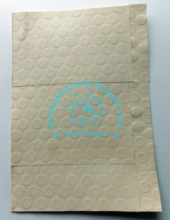 Lo primero es embossar con las carpetas de repujado de la Big Shot unos trozos de cartulina beis y los pego sobre la página.