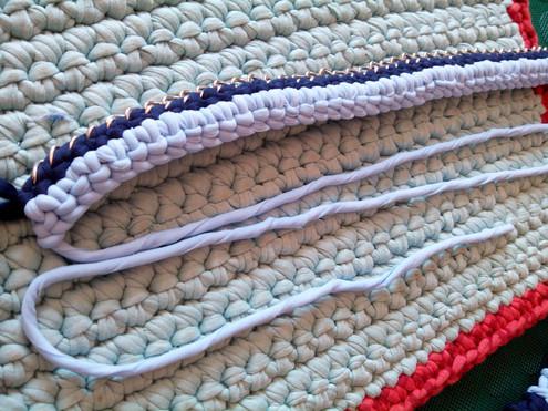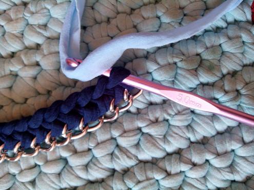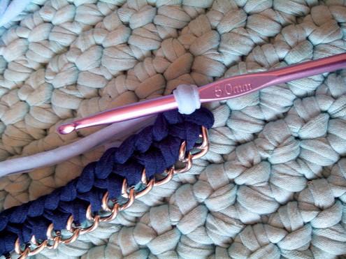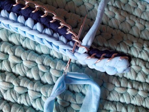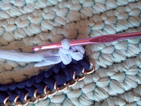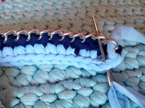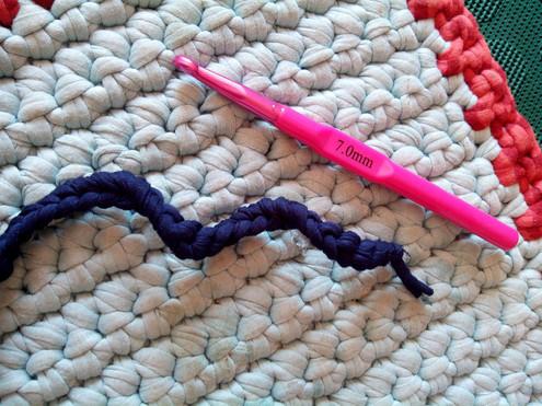 Si observáis en la foto voy escondiendo el trocito de trapillo sobrante a medida que voy tejiendo los puntos bajos.