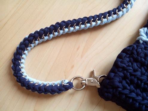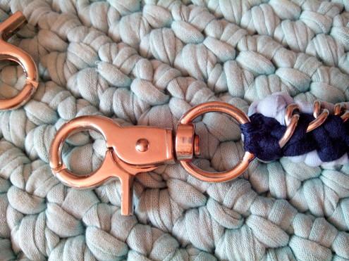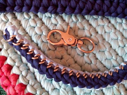 Acabada nuestra asa podemos coserle un mosquetón a cada extremo para añadirla a nuestro bolso.