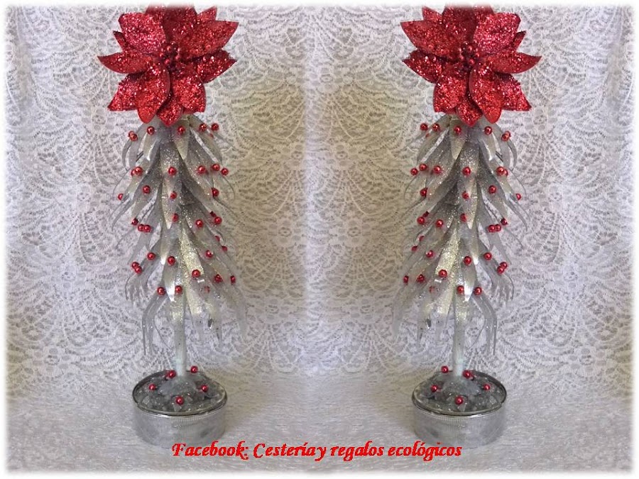 Y este pino que bien podemos hacer para regalar o decorar alguna mesa o escritorio también lo hacemos con picos de botellas....