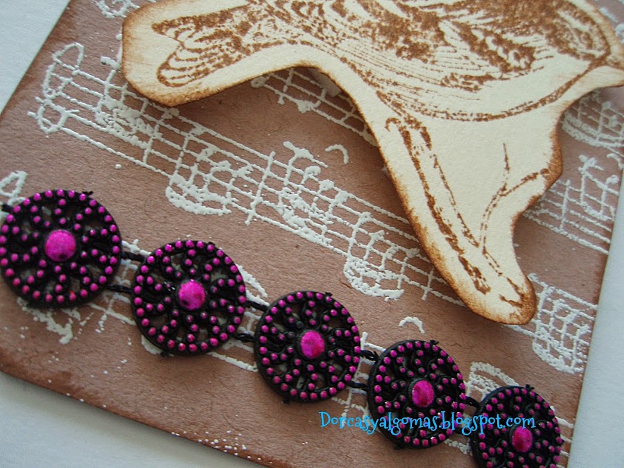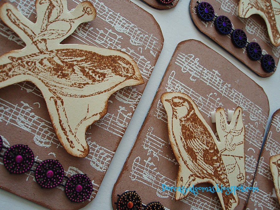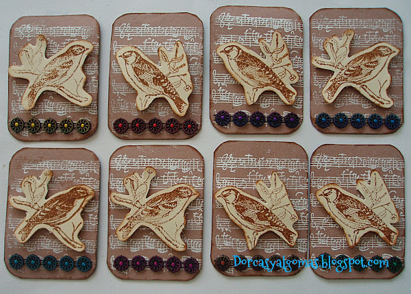 He disfrutado mucho haciendo estos ATCs, pues estoy descubriendo el embossing en caliente y me gusta un montón. He aprovechado la ocasión para hacer el fondo de los ATCs con embossing en caliente.