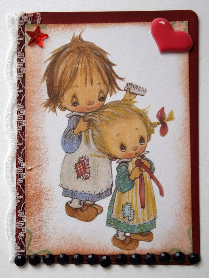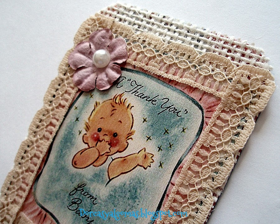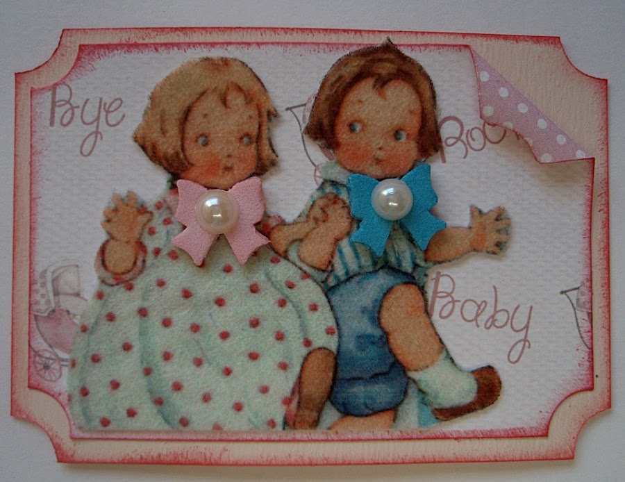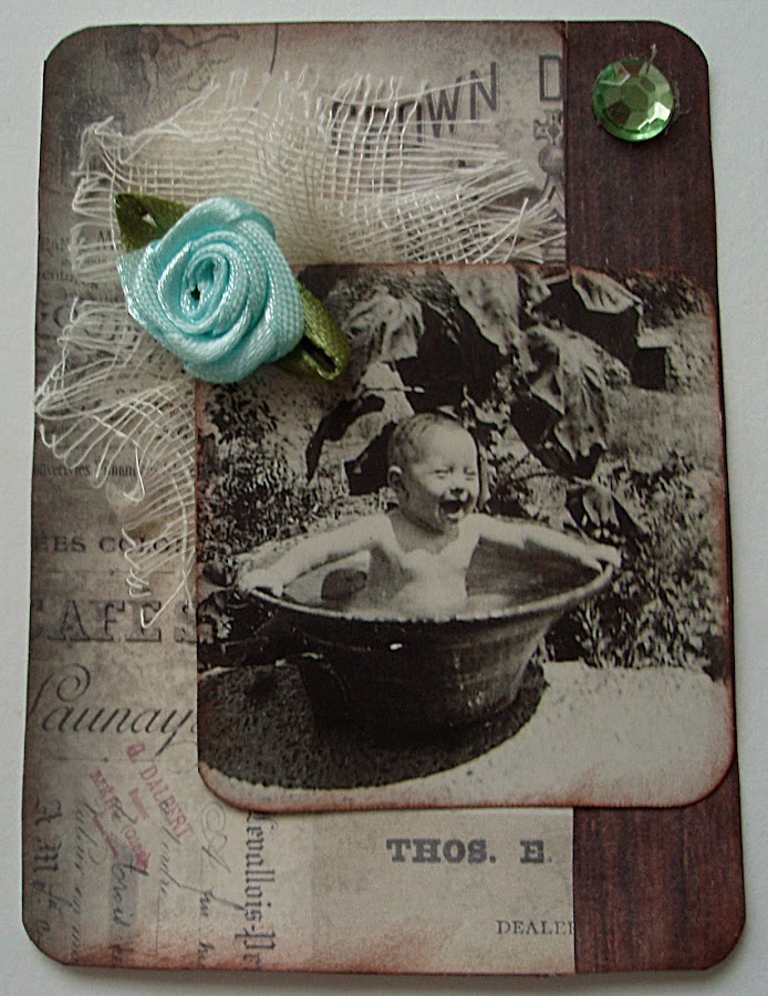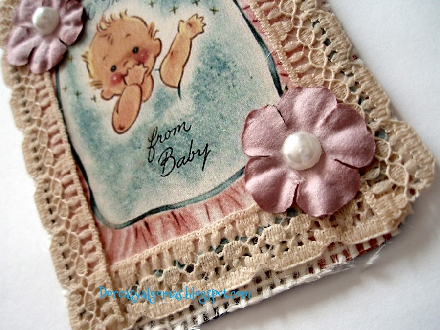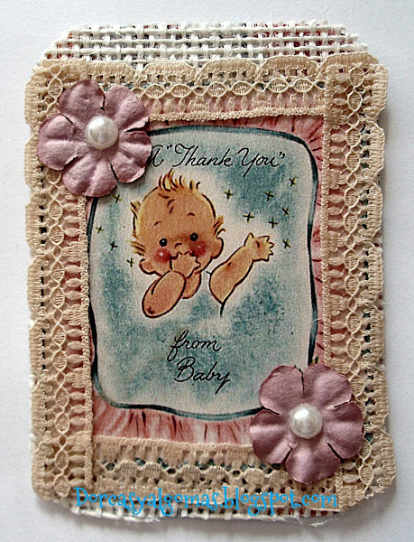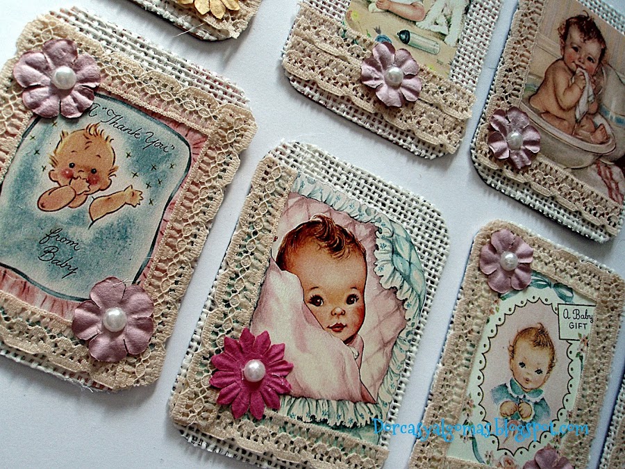 Os muestro la serie de ATCs titulada "Bebés" cuyos requisitos son: estilo vintage y llevar tela.