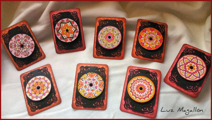 Os traigo las series de ATCs correspondientes a enero y febrero (entre los porpósitos para este año estaba hacer sólo una serie por mes y poder tener tiempo para otros trabajos). El primer mes del año el tema de las ATCs es "Mandalas" y para el siguiente "Pasión, poesía y mucho rojo", ambos propuestos por el grupo de Facebook CREANDO y COMPARTIENDO ATCs.
