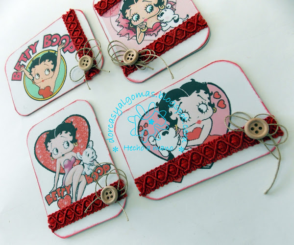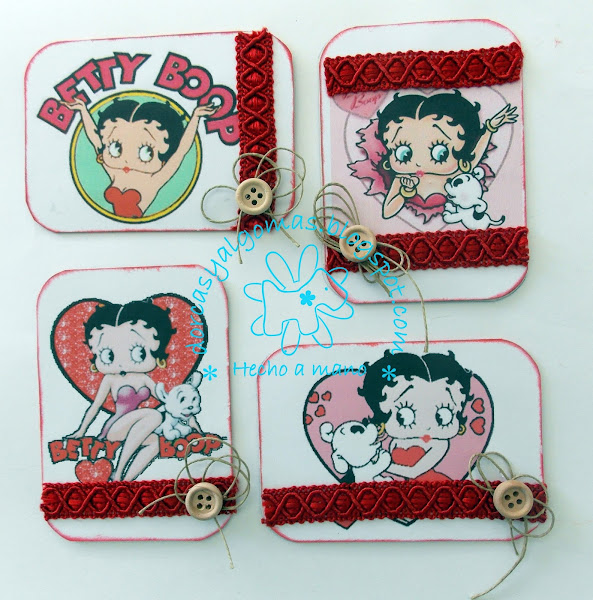 Os muestro los Atc´s de la serie "Dibujos animados" del intercambio organizado por el grupo Scrabooking Castilla y León. Como requisito tiene que llevar botones.