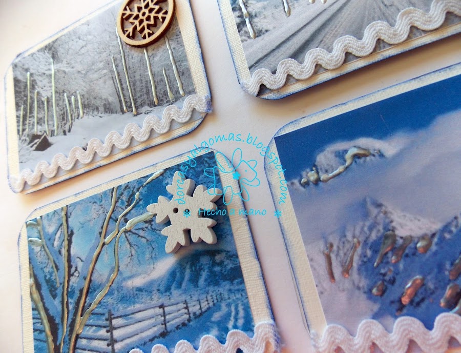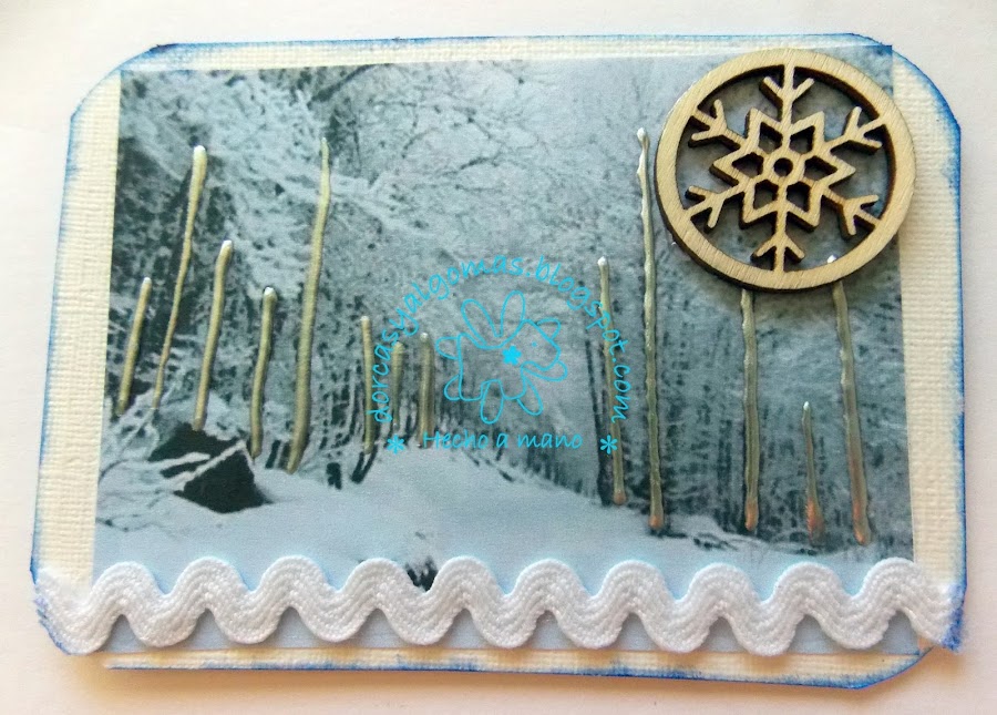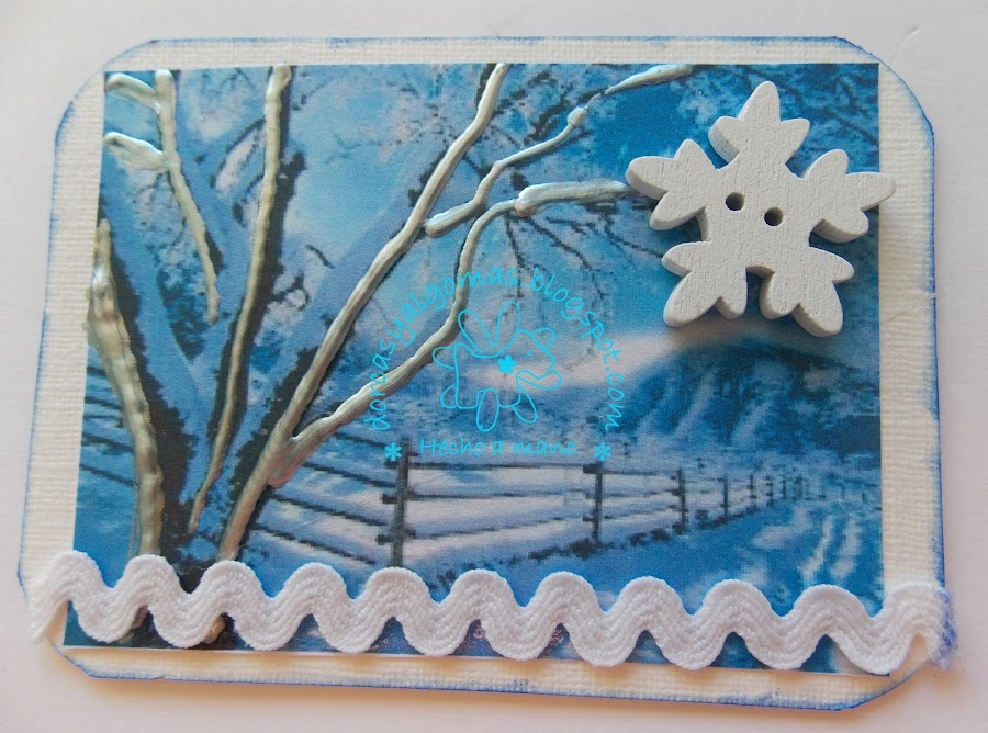 Os muestro los Atc´s de la serie "Paisajes" del intercambio organizado por el grupo Scrabooking Castilla y León. Como requisito tiene que llevar nieve.