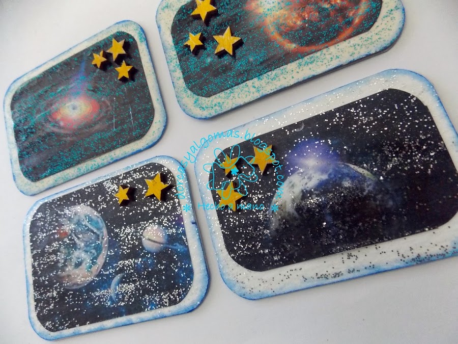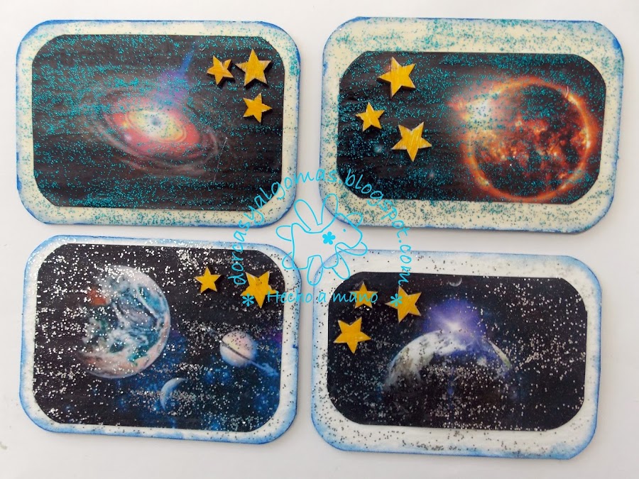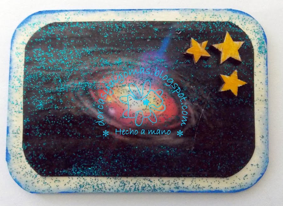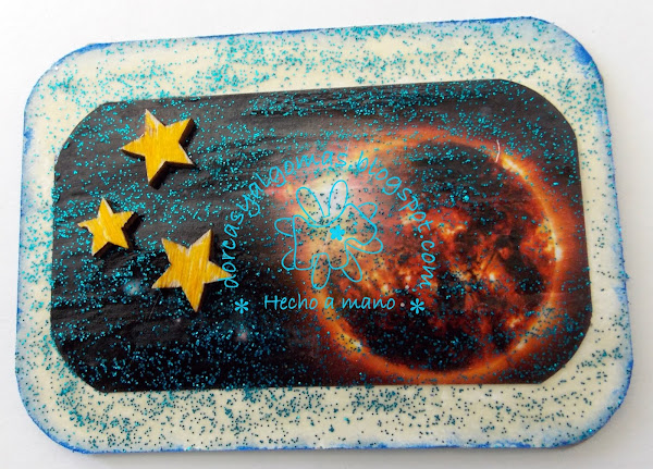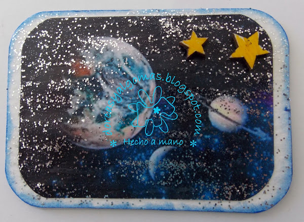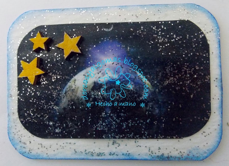 Os muestro los Atc´s de la serie "Universo" del intercambio organizado por el grupo Scrabooking Castilla y León. Como requisito tiene que llevar brillo.