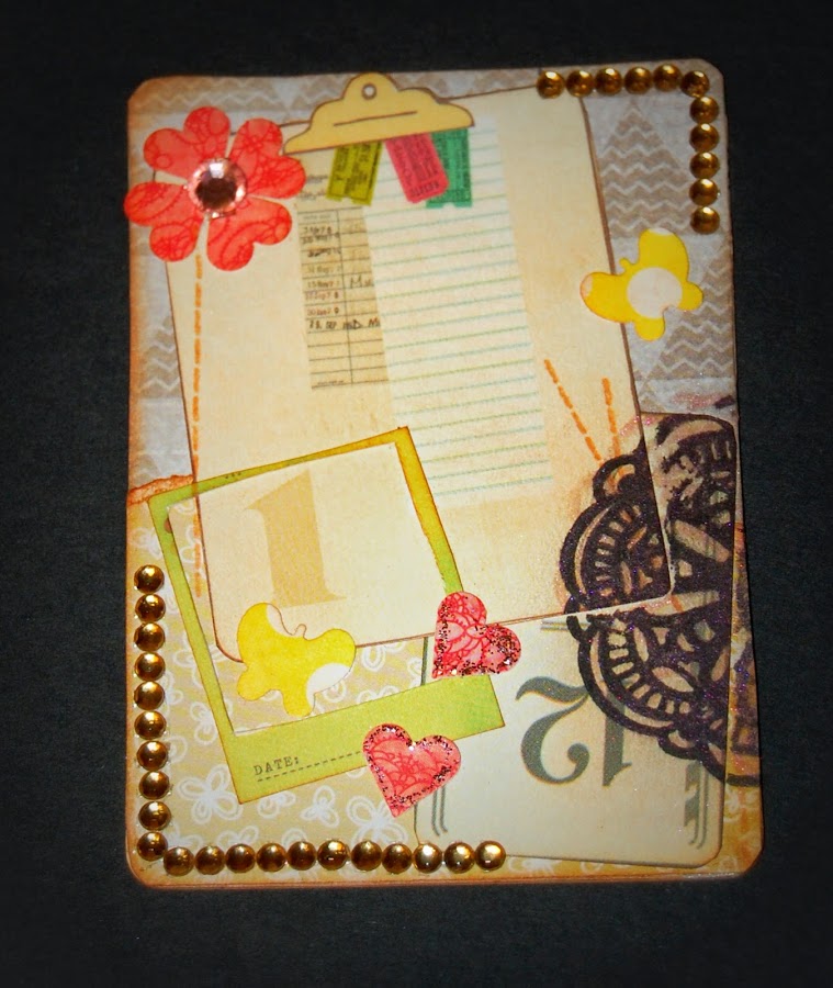 Os muestro una tarjeta que hice para regalar a la tutora de mi hija del curso pasado, la cual adjuntamos a un regalo que compramos entre todas las mamis y este papel de Graphic 45 me venía ni que pintado! Para la estructura utilicé una cartulina lisa color crema que previamente embossé con la Big Shot y entinté el relieve con un poco de Distress Ink color Vintage Photo estarcida con un aplicador ...