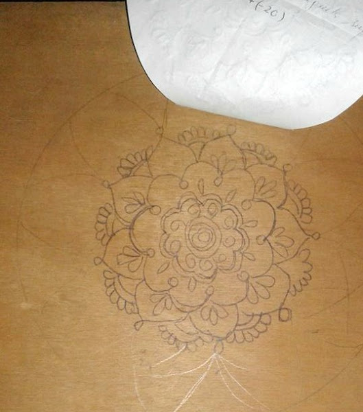 Ya tenía el diseño del bordado y como era un plan de pintar por pintar,lo que salga y sin presión alguna empecé transfiriendo ese diseño a la madera.