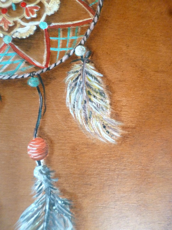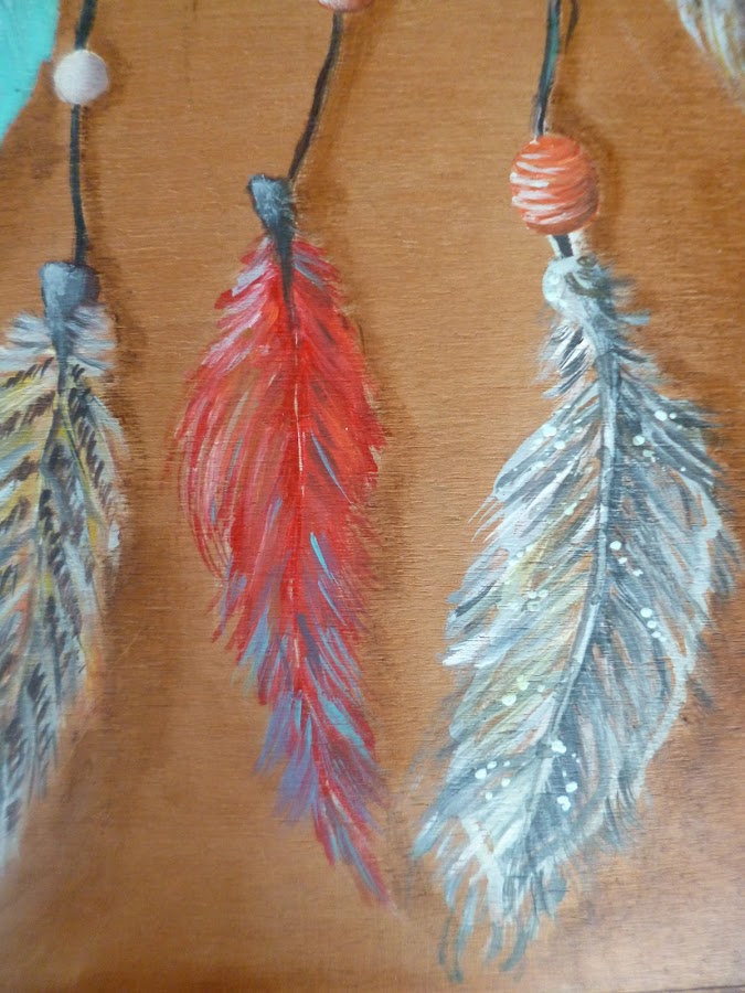 Jamás había pintado plumas,pero ni lo pensé e hice muchas rayitas..unas arriba de otras con diferentes colores,tampoco demasiado pensados.
