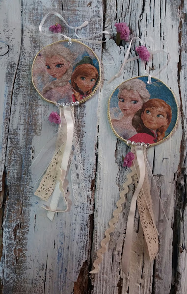 Los medallones son de corcho recortado. Alrededor llevan pasamanería, gemas, lazos, puntillas,...