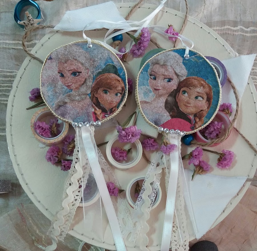 Al principio pensé en decorar una cajita, pero como quería regalarselo a dos niñas muy guapas, se me ocurrió hacerles un atrapasueños, para que soló tuvieran sueños bellísimos.