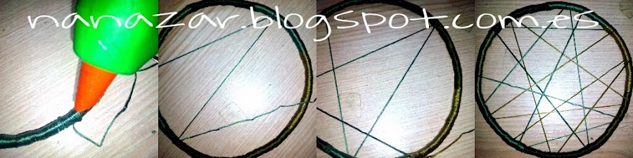 Para hacer la red solo debemos coger los hilos con los mismos colores que empleamos anteriormente, pegarlos en la parte trasera y pegarlos de un lado a otro arbitrariamente.