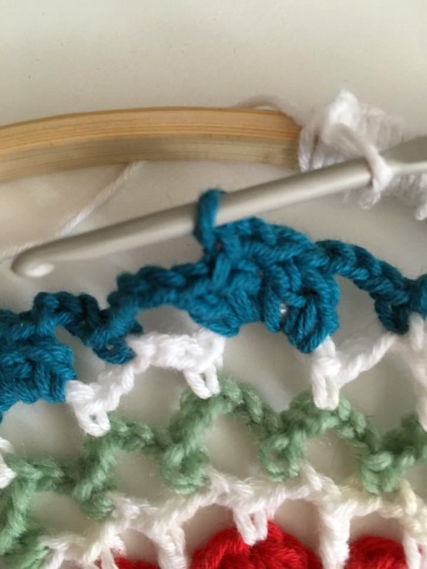 Donde necesitemos, enganchamos el círculo, y seguimos con nuestros puntos bajos.