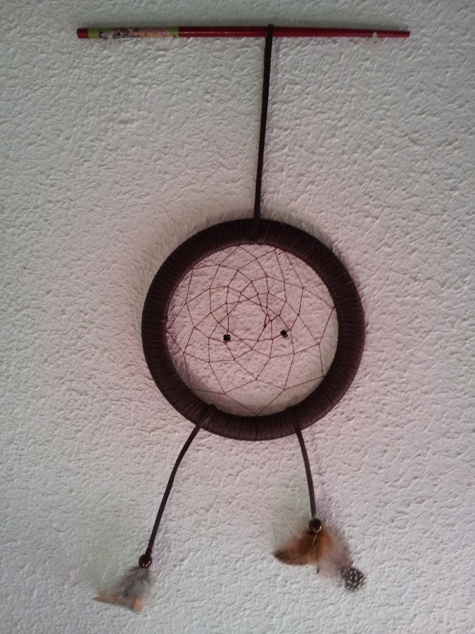 Los atrapasueños o cazadores de sueños están hechos a mano, sobre una base con forma de aro (tradicionalmente era de madera de sauce), con una red tejida floja como una telaraña en su interior y decorados con plumas y piedras.Son originarios de la nación nativa india de Norteamérica de Ojibwa aunque después se extendieron a otros pueblos nativos, y ahora se fabrican, exhiben y venden por todo el m ...