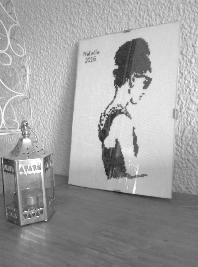 Una de las cosas que más me gusta, es poder modernizar algo como el punto de cruz. Muchas veces el bordado en general se entiende como algo antiguo, de abuelas, pero yo creo que puede ser moderno y llamativo. Lejos quedan los cuadros de abecedarios, de paisajes, o de muñequitas y se abren miles de posibilidades, como la que os presento hoy: Audry Hepburn.