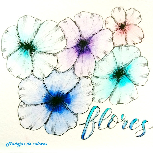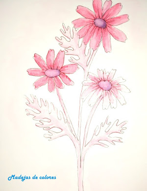 Estas flores fueron pintadas con rotuladores acuarelables directamente sobre el papel y luego difuminando con pincel, con un directo.