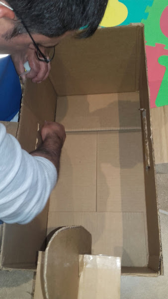Lo primero con unas tijeras y pidiendo ayuda a un mayor... Recortar los trozos de la cubierta de vuestra caja; tal y como quede así!