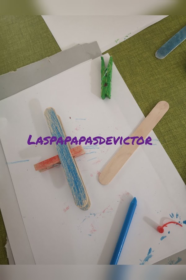 Han pintado con las acuarelas la pinza y dos palitos de polo