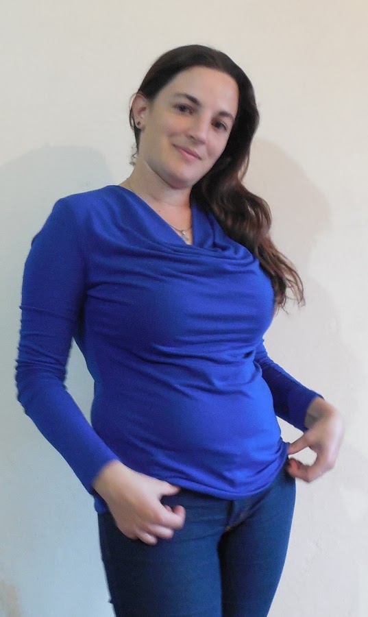 En la revista aconsejaba hacerla bien ceñida al cuerpo para que los frunces se mantengan en su sitio y fue lo que hice aunque debo confesar que me veo un poco rara con esta prenda ajustada ya que últimamente uso prendas más holgadas..