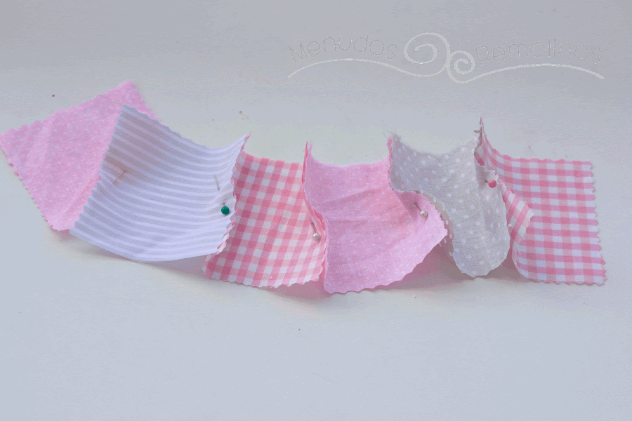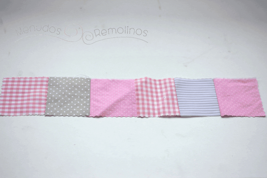- Telas de colores coordinados (yo he elegido diferentes telas en tonos rosas y grises)