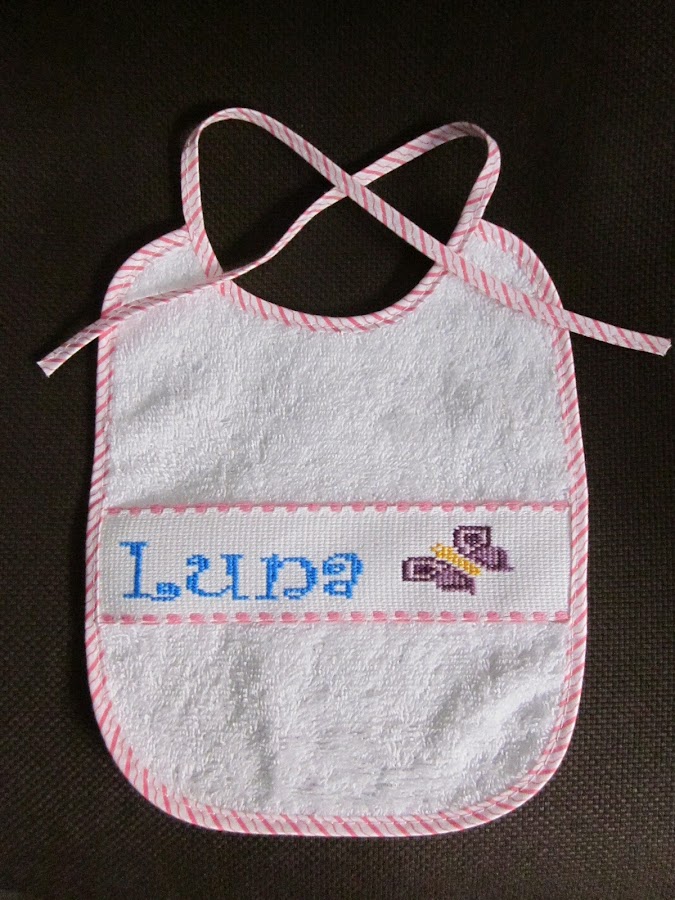 En esta ocasión el babero tiene el nombre y una mariposa (me encantan los nombres cortos jeje).