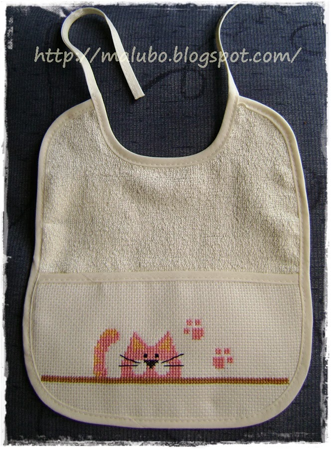 Este babero de gato en px lo bordé hace mucho tiempo, lo compré listo para bordar.