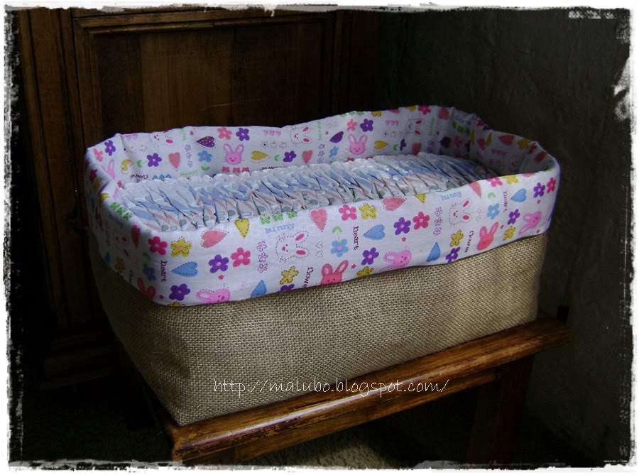Por último, este cesto lo hice hace casi un año para un baby shower, me gustó mucho el resultado, me parece que para los pañales quedó perfecto.