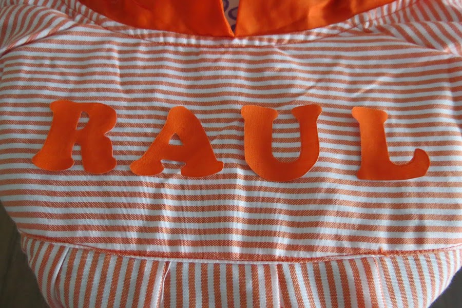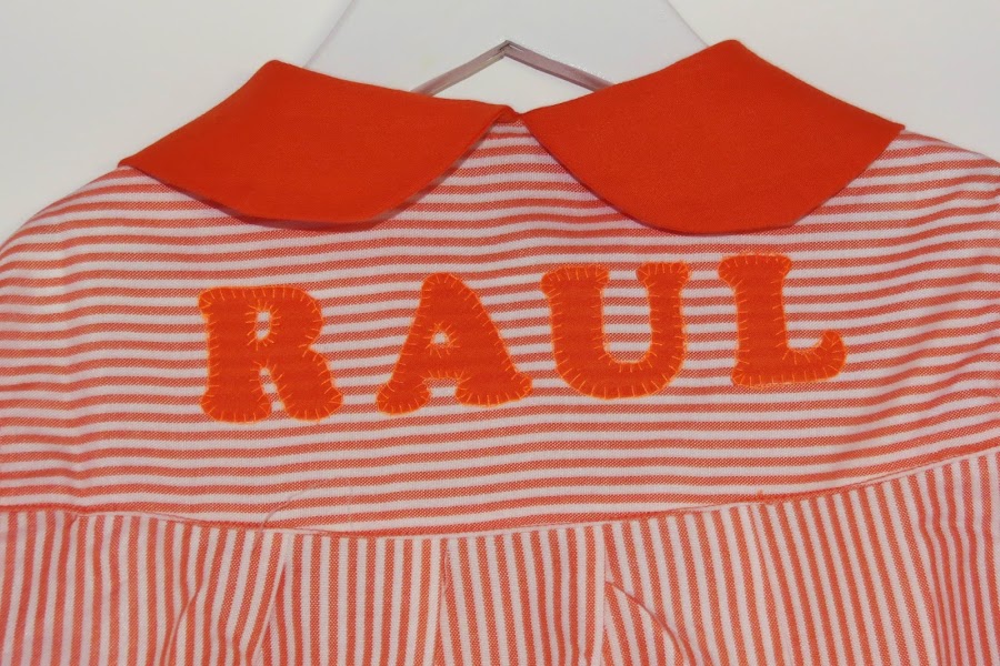 Comenzamos eligiendo la pieza que queremos dar un toque más personalizado, en este caso el babi naranja de rayas que os comentaba.
