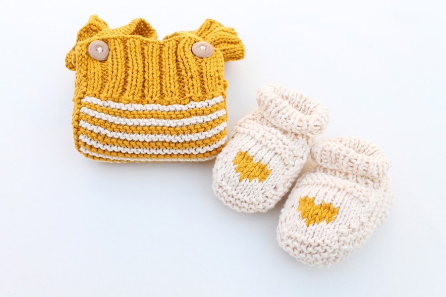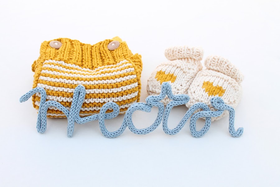 To knit the booties I have followed "Gansey Booties" pattern which I had saved a long time ago but I have seen that it is no longer available in Ravelry so I was lucky to have downloaded it at the moment because I love the way the outfit looks.