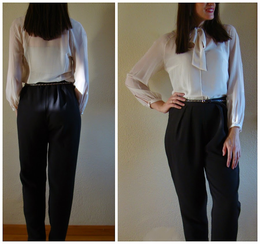 De hecho yo pienso que el pantalón ha quedado bien gracias a la tela. He utilizado un crep de invierno, con bastante cuerpo y caída. Una tela muy buena que compré a precio de ganga en Julián López, (3,99/metro).