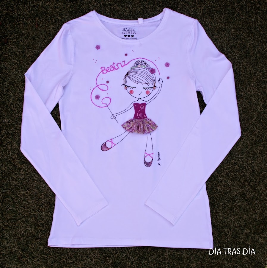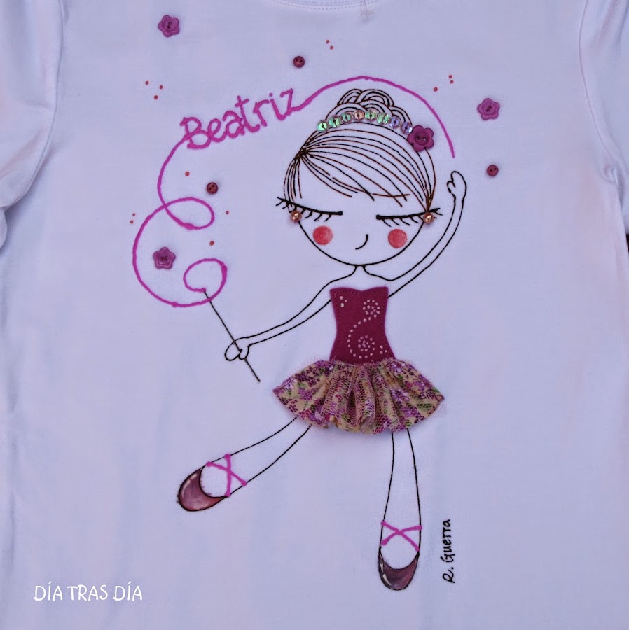 Manuela se puso en contacto conmigo para pedirme varias cosas, entre ellas un conjunto de bolso y camiseta para regalar a su sobrina para su cumpleaños. Quería para ella una camiseta del modelo Ro-ro bailarinay me dijo si podría hacerse un bolso a juego, del tipo del que ya había hecho anteriormente con el modelo Ro-ro columpio y que ya os enseñé aquí.