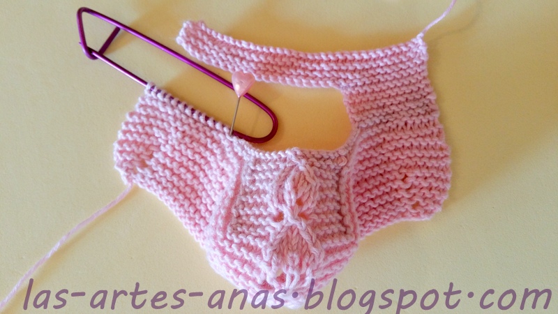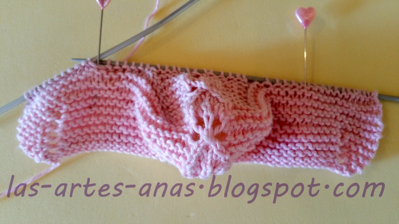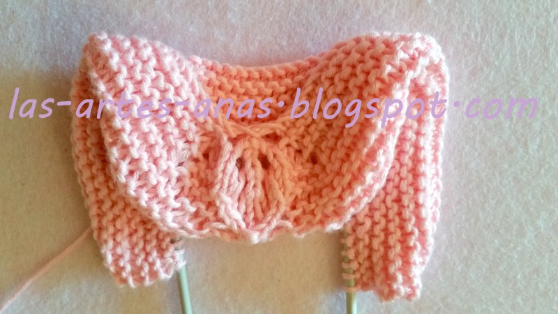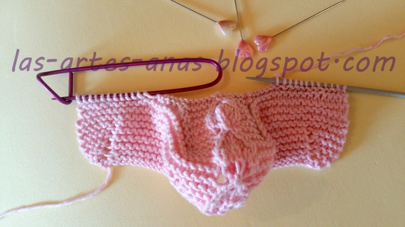 3ºVUELTA, 3 PUNTOS DERECHO, 1 aumento, 18 puntos derecho, 1 aumento, 4 p. derecho(centro) EMPIEZA A TEJER LA BASE PARA la 1º hojita en este centro ),1 aumento, 18 p. derecho, 1 aumento, 3 puntos derecho