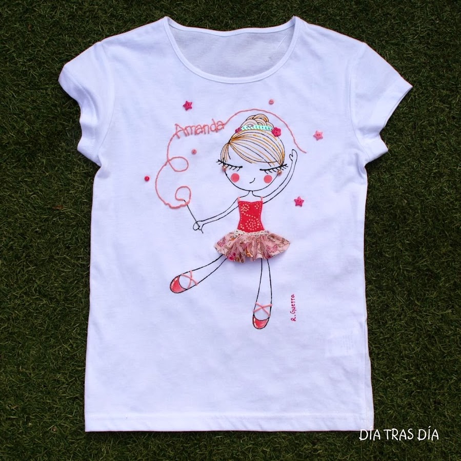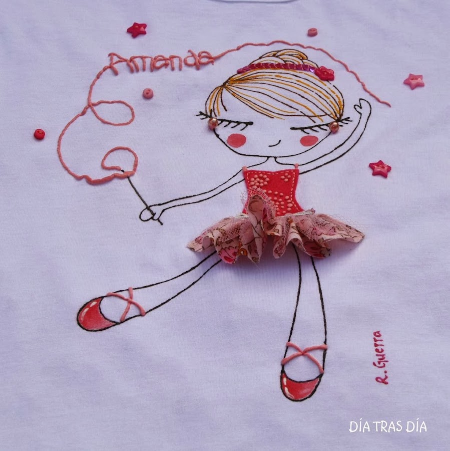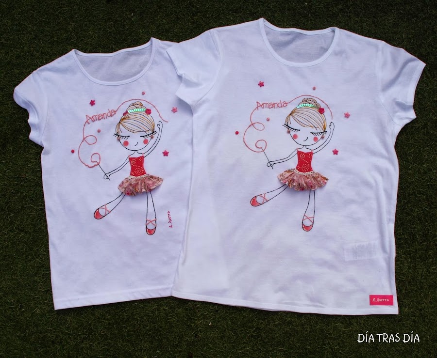 Pues hoy vengo a enseñaros una variante de este modelo que surgió cuando Amanda, que se puso en contacto conmigo porque quería que le hiciera unas camisetas a juego para ella y su hija con motivo del santo de las dos, me dijo que su peque hace gimnasia rítmica y que le encanta el color rosa. Quería que le hiciese alguna camiseta sobre esta temática y cuando le enseñé el modelo Ro-ro bailarina y le dije que se le podían hacer pequeñas modificaciones para adaptarlo a lo que me pedía, le pareció muy buena idea.