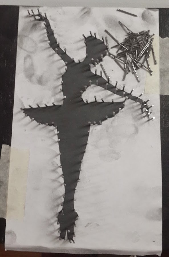Comencé desde abajo hacia arriba, anudando el hilo en una puntilla para seguir rellenando toda la figura y terminé nuevamente con un nudo.