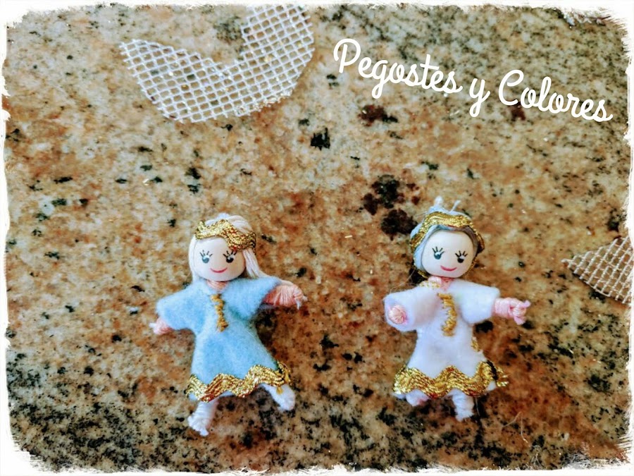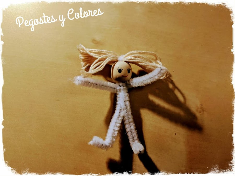 Para las haditas con cuentas de madera mas chicas, las cabezas son de 1.2 cm de diámetro y las piernas es un limpia pipas de 13 cm y brazos de 7cm.