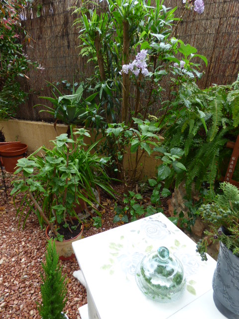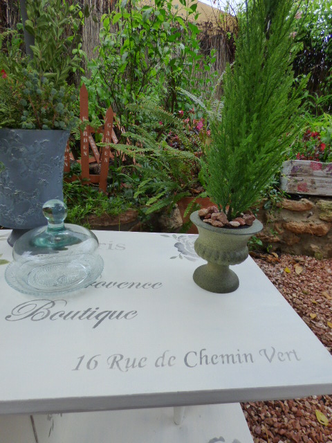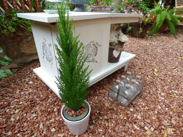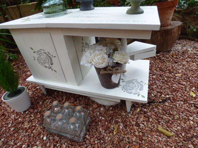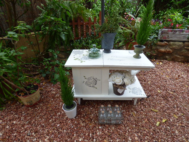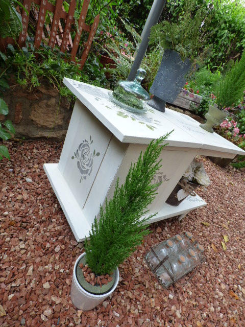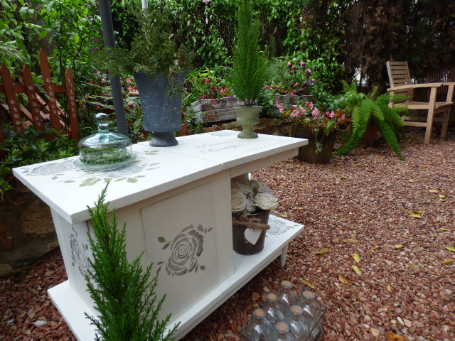 Vaya día lluvioso tenemos por aquí¡ Toda la mañana he estado esperando que dejara de llover y como no tiene pinta de parar, al final he abierto la sombrilla y he puesto debajo el mueble para hacer las fotos.