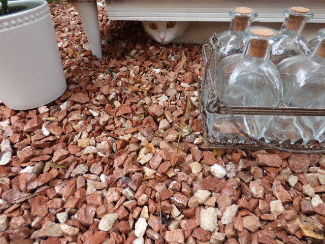 A Dana le ha faltado tiempo para venir a ver qué trajin me llevaba sacando cosas de casa y mojándome enterita¡ Enseguida se ha metido en el hueco bajo el mueble para desde allí, no perderse nada.